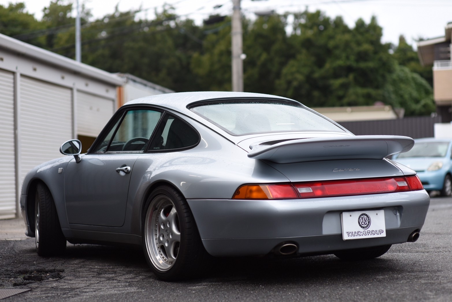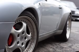 派手すぎず、光の当たり方で青みがかった輝きを見せる上品なシルバーで、993世代のボディラインを最も美しく見せるカラーの一つです。